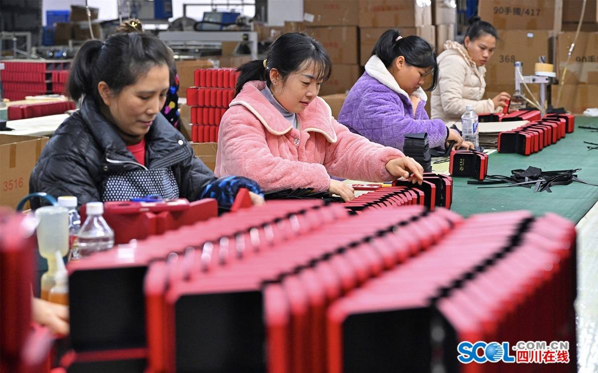 在仁壽縣經(jīng)濟開發(fā)區(qū)的成都創(chuàng)興科聯(lián)光電有限公司生產(chǎn)車間,工人正在趕制訂單產(chǎn)品。